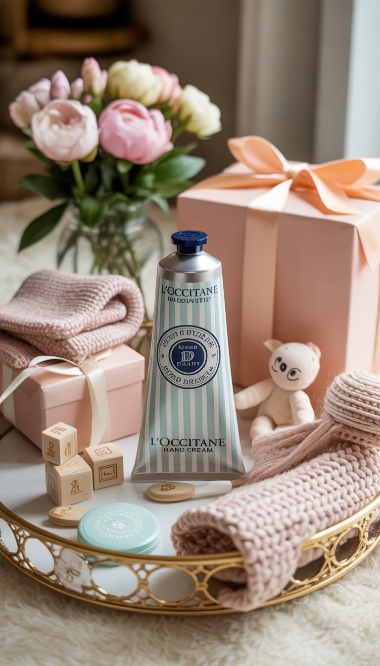 I love finding small ways to help a new mom feel special. L’Occitane Hand Cream is a treat I always recommend.
